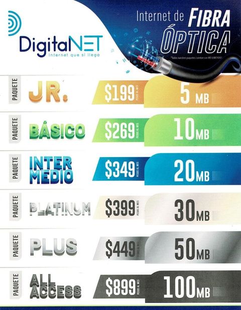 Buenas tardes, le presentamos los paquetes que se manejan y esto depende de la zona en la que este habitando Para saber mas informacion contactenos